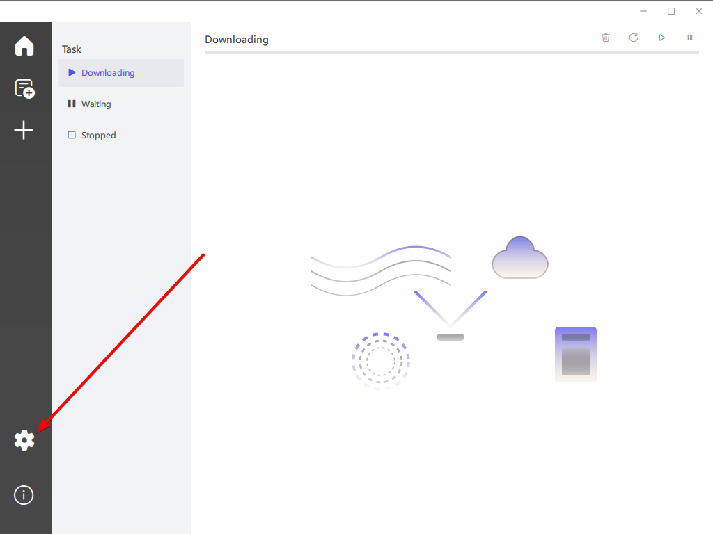 1、打开GDownload软件后,点击左侧齿轮按钮进入设置界面;
