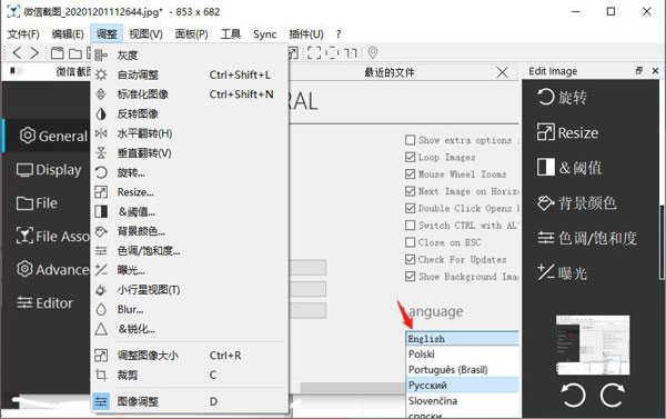 6、具备图像旋转、尺寸调整、裁剪功能,可查看GPS坐标,支持热键自定义、图像打印及多格式保存;