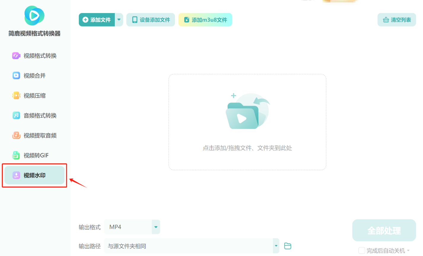 1、首先点击主界面左下角的“视频水印”功能模块;