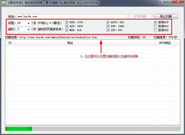 2、在域名输入框内准确填入需要扫描的后台地址,确保地址无误