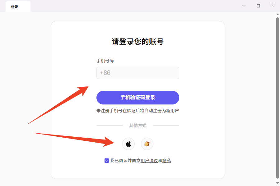 1、首次打开软件,支持多种登录方式,包括手机号登录、苹果账号登录及坚果云账号登录。