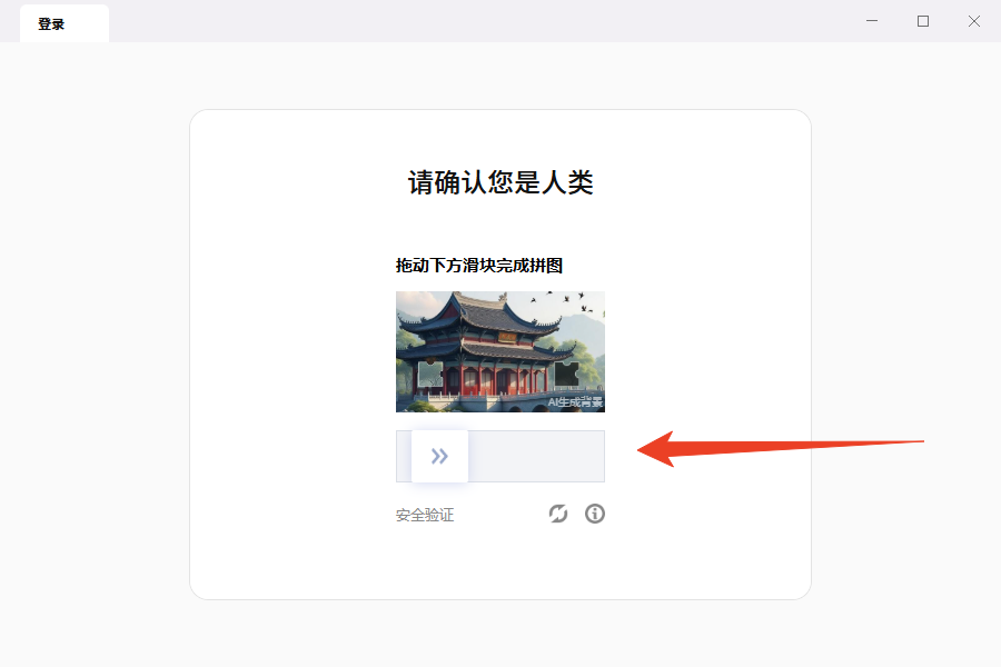2、登录前需完成安全验证,拖动滑块拼接完成拼图,即可通过验证环节。