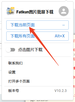 2、点击图标展开功能界面,可下载当前页面或所有已打开页面图片;