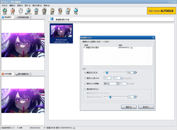 4、软件自带编辑功能,可调整图片大小、属性等参数。