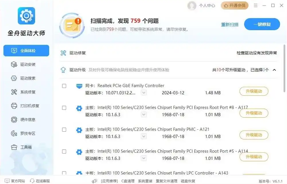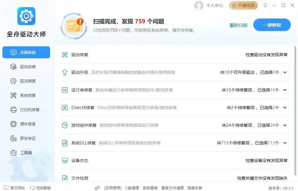 6、一键完成驱动安装、更新和修复,让电脑使用过程更省心、更无忧。