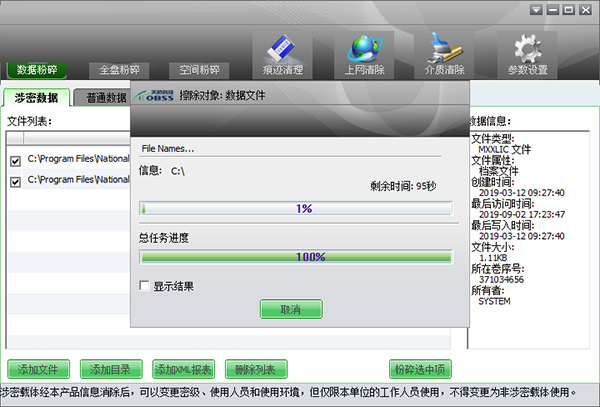 1、文件/文件夹销毁:可销毁单个或多个文件、文件夹,兼容各类格式数据。