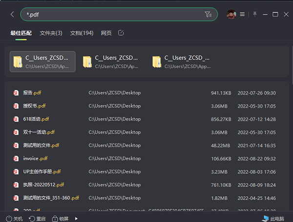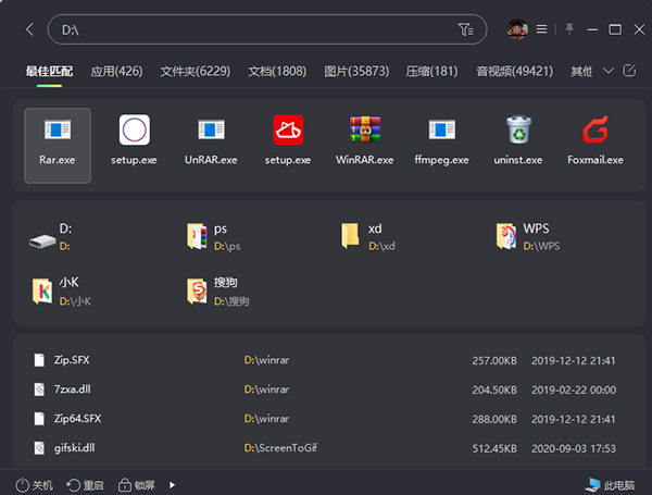 2、可搜索本地各类文件,通过快捷键实现本地与网络搜索的切换。