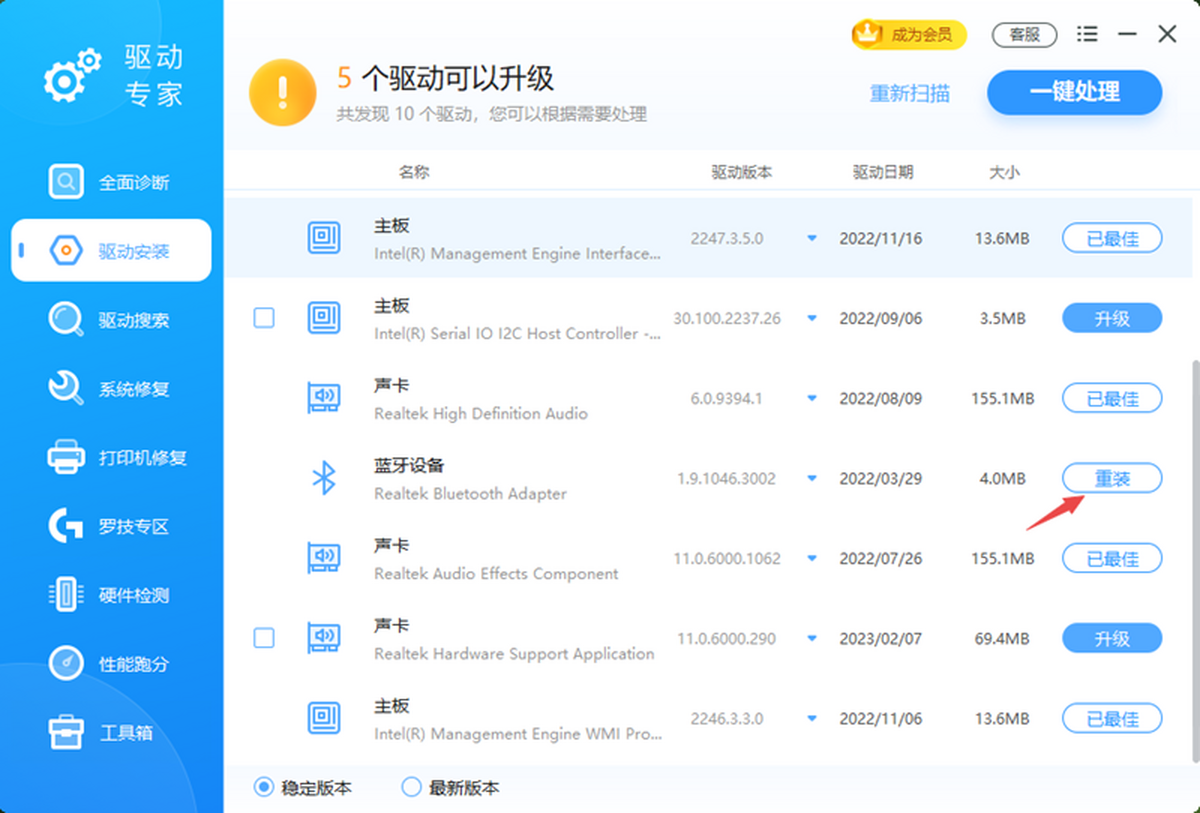 2、支持灵活安装与升级驱动,智能推荐稳定官方版本,外设可快速适配。