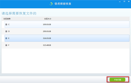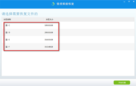 2、选定目标分区后,点击界面中的“开始扫描”按钮,启动扫描流程。