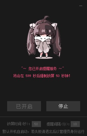 3、调出窗口后,可自行设置提醒间隔时间与锁屏时间,适配个人使用习惯。