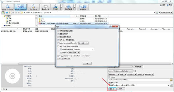 6、选项栏中,提供计算回放增益元数据、覆盖现有文件等多种辅助功能。