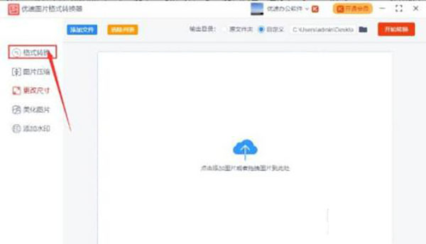 1、打开优速图片格式转换器界面,点击左上角“格式转换”功能,进入转换页面。