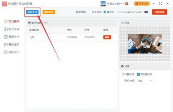 2、点击“添加文件”按钮,将需要处理的jfif格式图片导入到软件中。