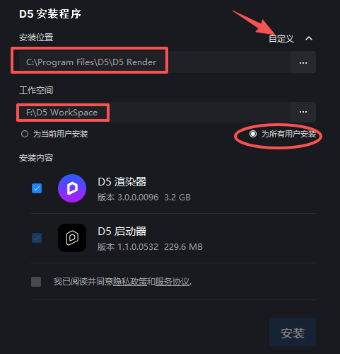1、打开软件安装包,根据实际需求,设置安装路径、工作空间等相关参数