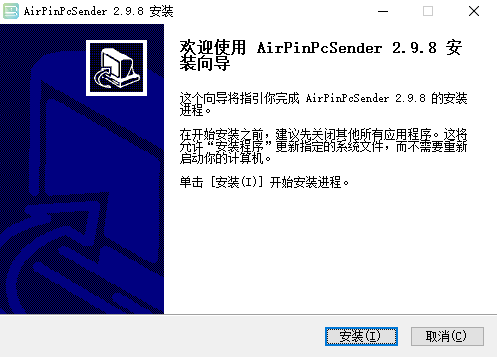 1、下载AirPinPCSender电脑版安装包,运行安装程序,进入安装向导页面后,点击“安装”按钮。