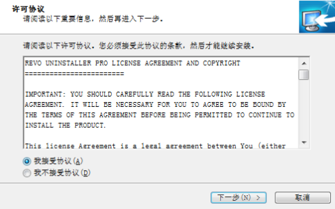1、打开RevoUninstaller绿色版安装包,仔细阅读软件安装协议后,点击接受协议。