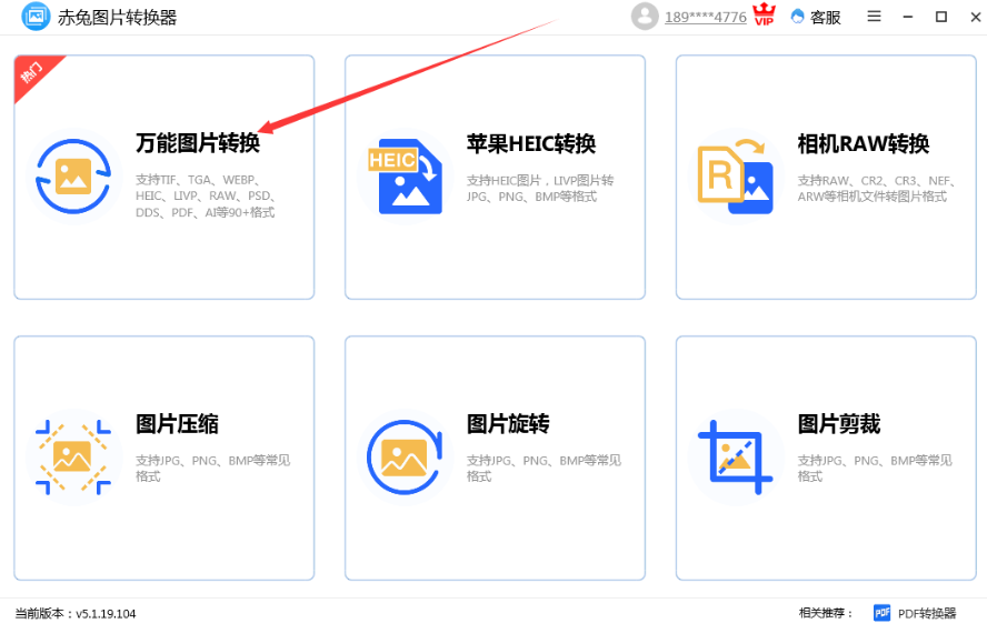 1、首先下载并安装“赤兔图片转换器”,打开软件后,选择“万能图片转换”功能。