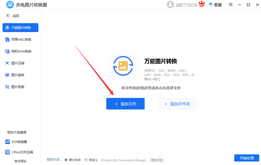 2、点击“添加文件”按钮选择CRW格式图片,也可拖放文件自动添加;