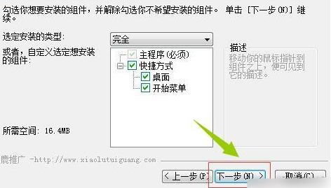 2、根据自身使用需求,选择需要安装的组件,勾选完成后进入下一步。