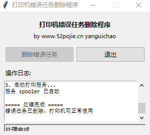 2、弹出完成提示框,提示错误任务已删除,打印机可正常使用;