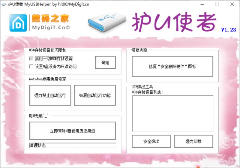 5、进入访问限制设置界面,可在软件中禁用所有USB设备,还能修复安全删除硬件图标;