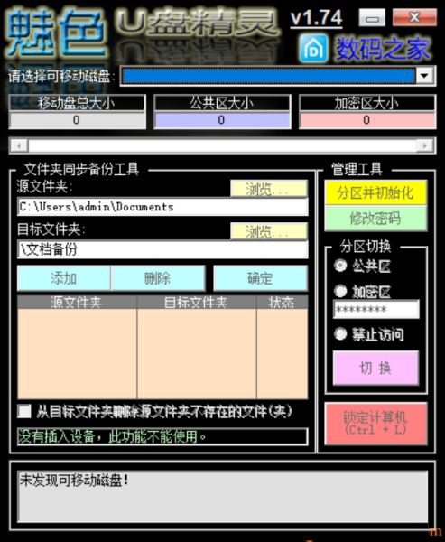 6、将U盘插入电脑,启动对应U盘精灵,为文件夹设置同步备份方案;