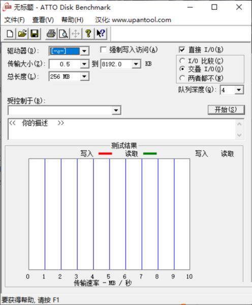 7、进入速度测试界面,可对C盘进行速度测试,软件会显示4K测试速度;切换至磁盘基准测试界面,选择U盘设备并点击开始测试,测试结果将在底部显示;