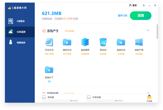 2、扫描磁盘:支持对电脑所有磁盘分区全面扫描,精准识别并管理各分区垃圾文件,实现全盘清理。