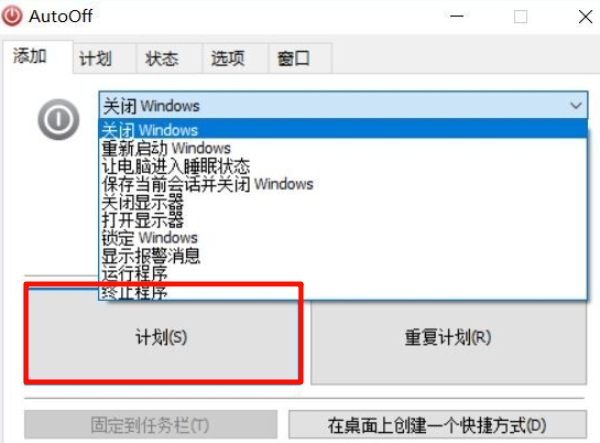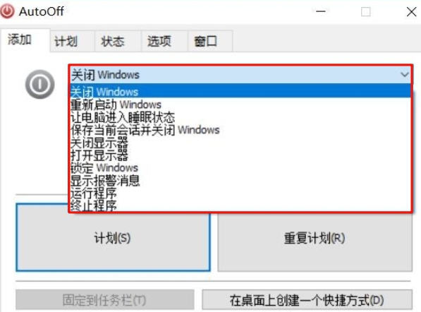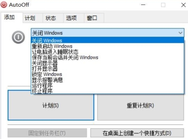7、任务栏跳转列表:右键单击任务栏固定的AutoOff图标,可快速启动软件相关功能,节省操作时间。