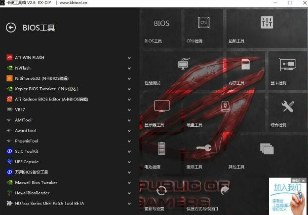 卡吧工具箱是一款集成了多种硬件检测、管理和性能测试工具的综合性软件,这款软件主要是给喜欢研究电脑硬件和自己装电脑的人用的,里面有不少实用的小工具,像BIOS相关操作、查看CPU信息、测试硬件性能、调节超频还有检查内存之类的功能全都有,用它能清楚测出电脑硬件的实际表现,能挨个查看电脑里各类硬件的运行情况。
